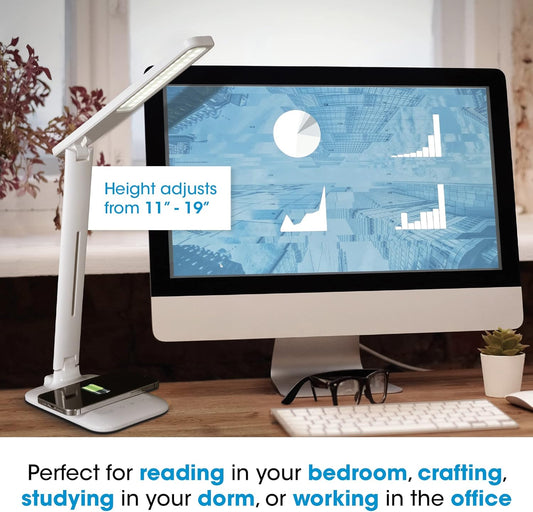 LED Desk Lamp with Wireless Qi Charging & USB Charging Port